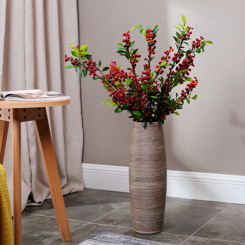 Die Vase besteht aus Keramik und hat eine konische Form. Die erdige Farbgebung verleiht ihr einen markanten Charakter. Sie sieht auf einem Tisch, Regal oder Sideboard, mit getrockneten Blumen oder als eigenständiges Dekorationsstück toll aus.
